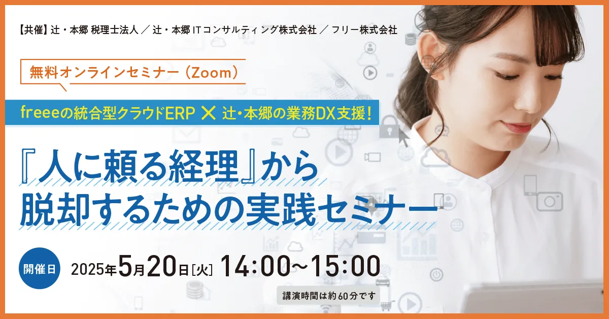 経営の透明性を高め、業務を円滑に進めるためには、経理業務の見える化と効率化が欠かせません。そこで、辻・本郷 ITコンサルティング株式会社が、フリー株式会社と共催で2025年5月20日(火)に「freeeの統合型クラウドERP × 辻・本郷の業務DX支援!」というテーマのオンラインセミナーを開催します。このセミナーは、経理業務の属人化や手作業が引き起こす課題を持つ企業に向けて、業務可視化の方法やシステム化による改善事例を紹介し、実践的なアプローチを提供します。特に、freeeの統合型ERPシステムの紹介を通じ、いかに業務を効率化しバックオフィスの生産性を向上させるかを探求します。