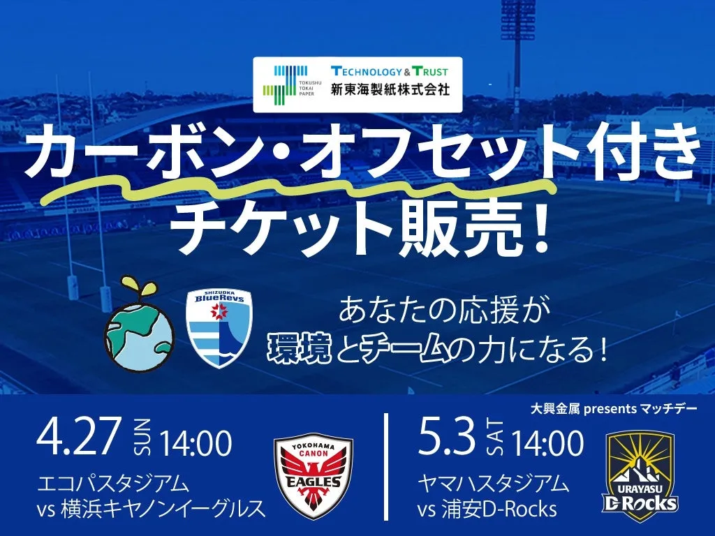 カーボン・オフセットが適用される試合は、2024-25シーズンの D1 第16節(4月27日)と第17節(5月3日)です。両試合ともに対戦相手はそれぞれ横浜キヤノンイーグルスと浦安D-Rocksで、観客はエコパスタジアムやヤマハスタジアムで熱戦を目撃します。