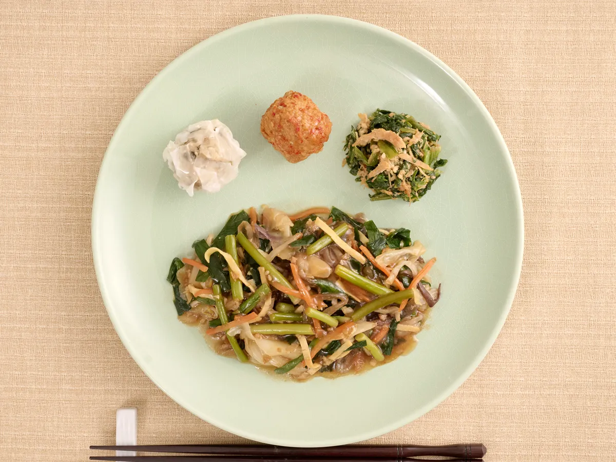 このメニューは「野菜をガッツリ食べたい!」という多くのリクエストを受けて開発されました。色とりどりの野菜がたっぷりと使用され、にんにく風味の特製タレで仕上げられています。モリモリとした野菜の盛り合わせは、低カロリーでありながら栄養素が満点。さらに、豚の油とにんにくの香りが広がる食欲をそそる味わいに仕上がっています。