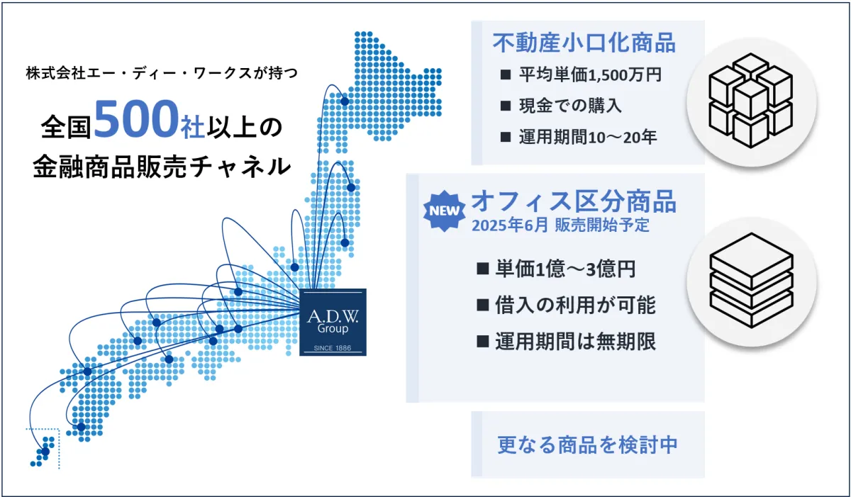 ADWがこの新規事業を推進する背景には、過去の不動産小口化事業で得た豊富な経験があります。既に開拓した500社以上の販売チャネルを活用することで、商品の販売力を強化し、今後の市場競争において優位に立つことが期待されます。
