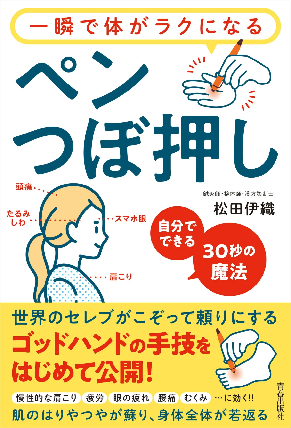 現代社会では多くの人々が慢性的な肩こりや腰痛、疲れ目、ストレスに悩まされています。整体や鍼灸院に通うのは時間もお金もかかりますが、セルフケアの需要は高まっています。そこで、真っ先に紹介したいのが鍼灸師の松田伊織氏が提唱する「ペンつぼ押しメソッド」です。