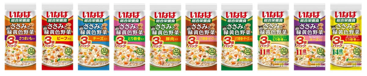 いなばペットフード株式会社が、新しいパッケージデザインで「ささみと緑黄色野菜」シリーズの総合栄養食をリニューアルしました。このシリーズは、わんちゃんに必要な栄養をバランス良く配合したアイテムで、これまでの魅力はそのままに、より見やすく、わかりやすいデザインとして新たに生まれ変わりました。