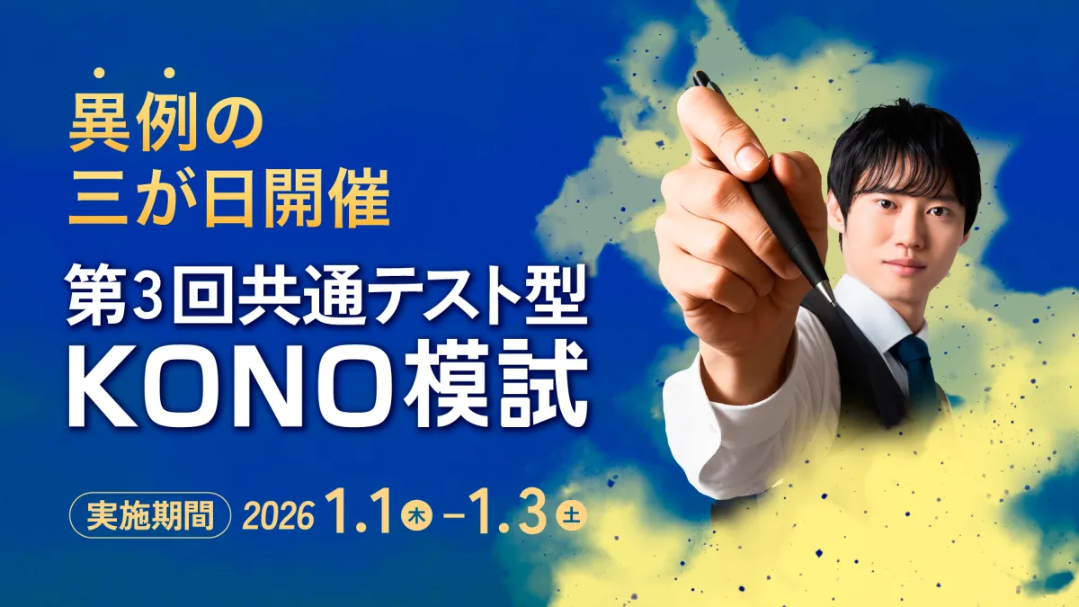 株式会社Stardyが運営するオンライン予備校「河野塾」は、2026年1月1日から3日までの三が日に、無料のオンライン模試「第3回共通テスト型KONO模試」を実施することを発表しました。この模試は、受験生が年明け早々に自分の実力を確認できる貴重な機会となります。