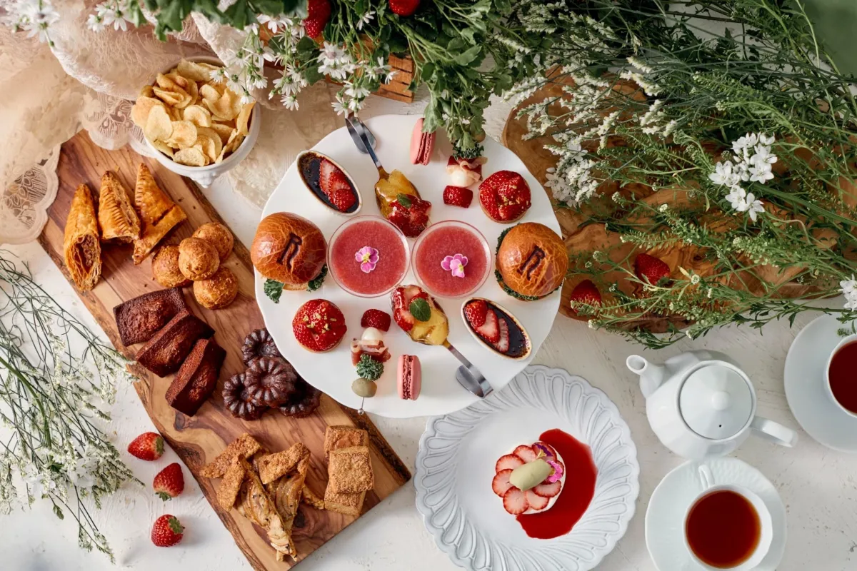 アフタヌーンティーの目玉として楽しみにされているのが、苺とピスタチオのパブロヴァです。この美しいデザートは、ふわふわなメレンゲに絡むクリームと新鮮な苺、ピスタチオのトッピングが絶妙なバランスで、思わずため息が漏れる逸品です。デザートは美味しさだけでなく、見た目でも楽しませてくれます。