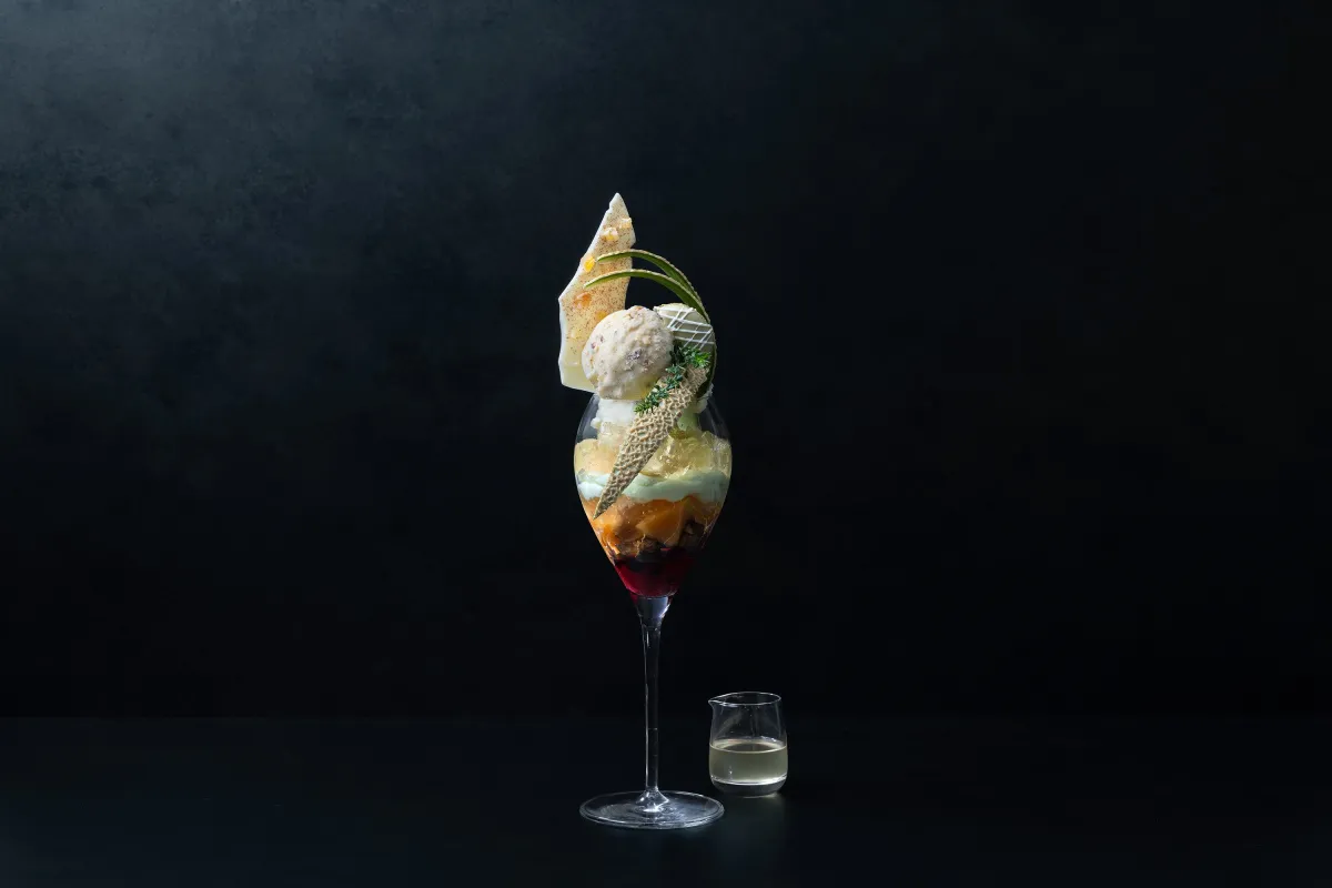 春の風を感じさせる新作は、みずみずしいメロン果肉とメロンジェラートを基に、レモンカシスの甘酸っぱさと生姜果肉ジュレを重ねた一品です。いちごムースが加わり、さらにはライム香るジンジャーゼリーがアクセントとなり、最後には自家製のジンジャーエールシロップをかけて変化を楽しむことができます。甘みと酸味の絶妙なバランスが、春の到来を感じさせてくれることでしょう。この爽やかなパフェは、税込2,300円で楽しむことができます。