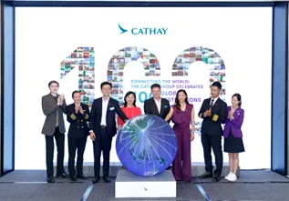 キャセイグループが6月に、旅客便の就航先を世界100都市に拡大したことを記念して、香港のアイランド・シャングリ・ラ・ホテルで盛大な祝典を開催しました。このイベントには、同グループのパトリック・ヒーリー会長やロナルド・ラムCEOをはじめ、香港特別行政区政府のメイブル・チャン運輸物流長官など、著名なゲストが出席しました。