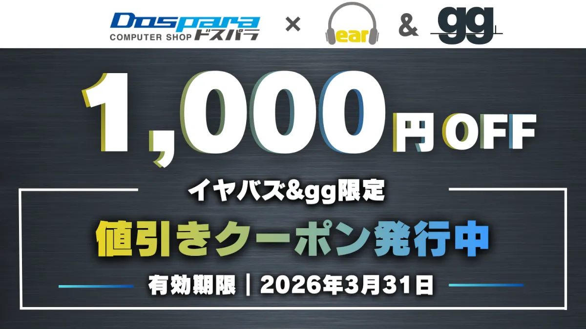 - - 利用方法: 「イヤバズ」内の「ドスパラ クーポン」記事に記載されたクーポンコードを入力することで適用可能です。