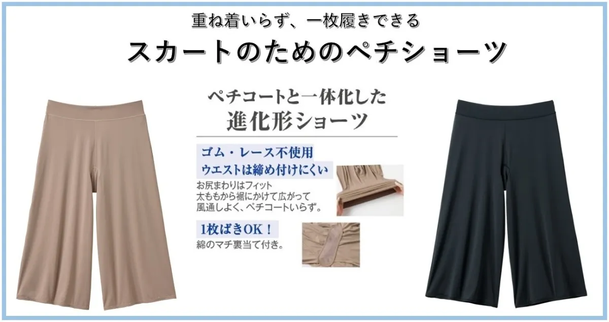 担当者は「ショーツとペチコートの機能を1枚で実現することで、涼しさや着心地が向上し、洗濯物も減らすことができる。まさに、現代のニーズにマッチした時短・快適アイテム」と語ります。