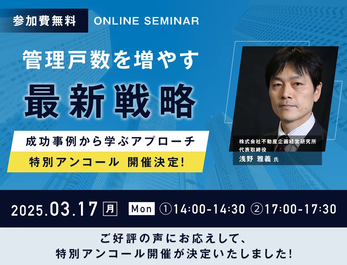不動産テックをリードする日本情報クリエイト株式会社は、好評により2025年3月17日(月)にウェビナー「管理戸数を増やす最新戦略 ~成功事例から学ぶアプローチ~」の特別アンコール開催を発表しました。このウェビナーは、管理事業の拡大を目指す多くの人々に向けて、無料で提供されます。