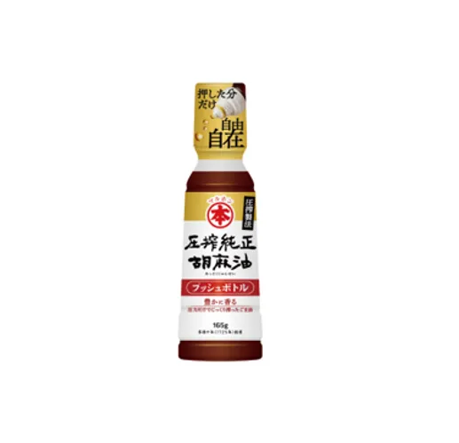 フェアの特徴は、飲食店のテーブルに常設された「マルホン圧搾純正胡麻油 プッシュボトル」を使って、お客様自身が自由にごま油を足せるという点です。この“追いごま油”が、食事をより深みのあるものに変えるのです。例えば、「最後の一口まで香りを堪能したい」「通常の量では物足りない」といったお客さまの要望を叶えることができます。