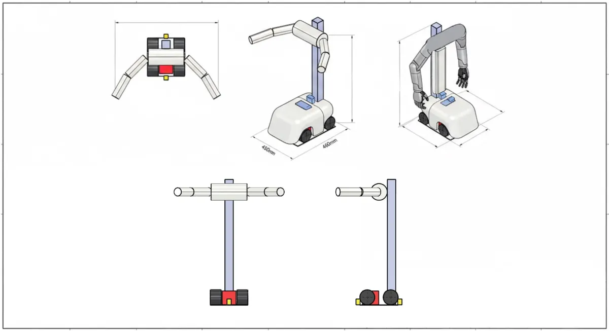 この台車は、各企業の双腕ロボットに合わせて設計変更も可能であり、ニーズに応じたカスタマイズができるのが特徴だ。