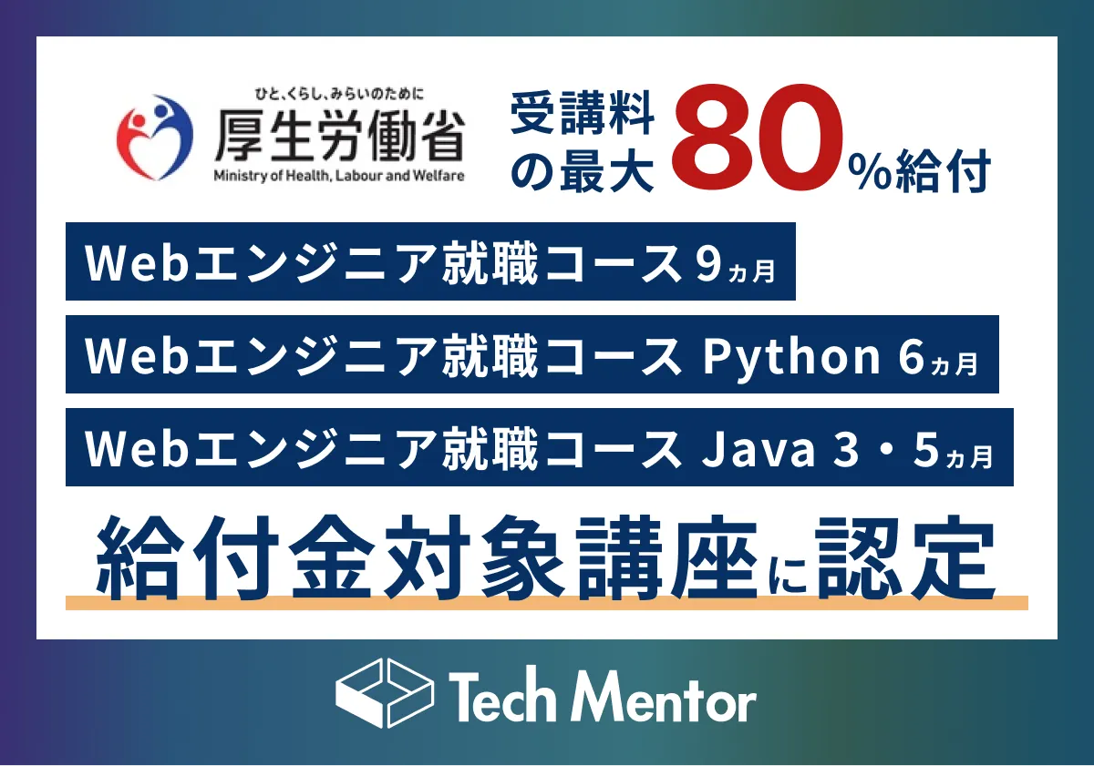 株式会社ifが運営するオンラインプログラミング・Webスクール『Tech Mentor』では、新たに認定された3つの専門実践教育訓練講座が登場しました。経済産業省の「第四次産業革命スキル習得講座」と厚生労働省の「専門実践教育訓練講座」として認められたこれらのコースは、IT業界での転職やスキルアップを目指す人々に、大きな学びの機会を提供します。