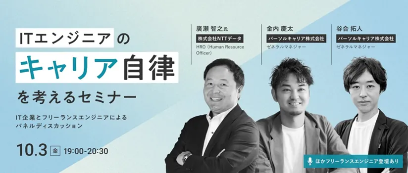 パーソルキャリア株式会社が運営する転職サービス「doda」が、2025年10月3日(金)にITエンジニア向けのオンラインセミナーを開催します。このセミナーでは「キャリア自律」をテーマに、IT業界における働き方の変化や、それに伴うキャリアの築き方について考察します。