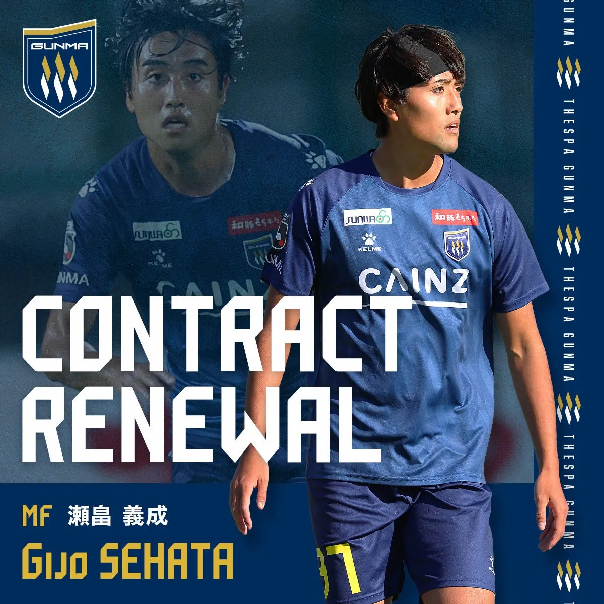 瀬畠選手は契約延長にあたり、次のようにコメントを寄せています。「今シーズンの夏から群馬で戦わせていただくことになりましたが、J3への降格を経験し、申し訳なく思っています。自分の力不足がつらい時期をもたらしましたが、来シーズンもプレーできることに感謝しております。クラブ、スポンサー、ファンの皆さまに対して存在価値を示せるように、一生懸命努力する所存です。」と、来シーズンへの意気込みも語りました。