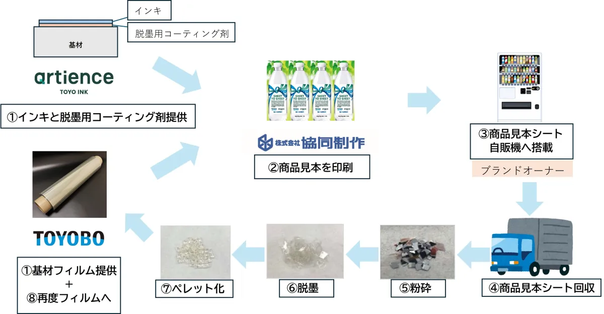 2023年、東洋インキ株式会社は株式会社協同制作、及び東洋紡株式会社と手を組み、自動販売機向け商品見本シートのリサイクルシステム「水平リサイクル」を導入しました。この取り組みでは、印刷インキを基材から分離し、再利用を可能にする技術が鍵となります。