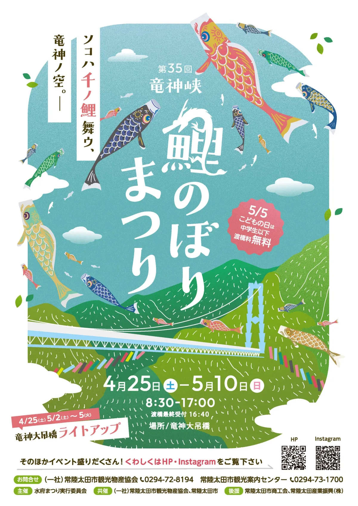 今回の鯉のぼりは、竜神大吊橋の上空や周辺に配置され、全体で約1,000匹が非常に見応えのある形で展示されます。具体的には、竜神ダム上空に約500匹が並び、また道路沿いや道の駅ひたちおおた周辺にも多くの鯉のぼりが飾られます。この美しい光景は、春の絶好の撮影スポットとしても人気が高まることでしょう。