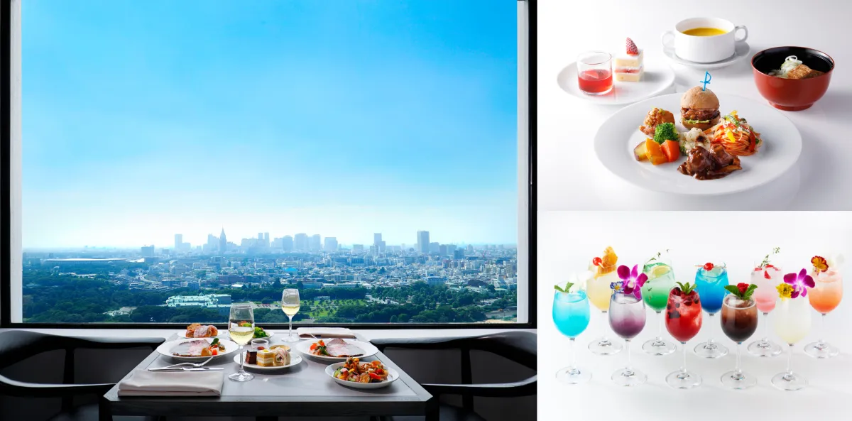 ビュッフェダイニングの最上階からは、息を呑むような美しい東京の景色が広がります。日中は青空、夜は煌めくネオンが目の前に広がり、食事をしながら絶景を楽しめます。この特別な場で、同行する家族や友人とともに美味しい料理をシェアする喜びは格別。