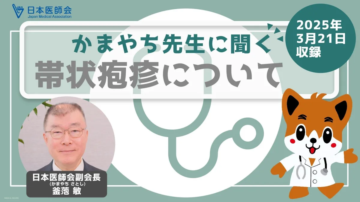 日本医師会の公式YouTubeチャンネルでは、帯状疱疹についての解説動画が公開されました。この動画は、帯状疱疹ワクチンが2023年4月1日から定期接種化されたことに伴い制作されました。解説には、日本医師会の副会長である釜萢敏氏が登場し、医療に関する知識を持たない親しみやすいキャラクター「日医君」との対話形式で進行します。