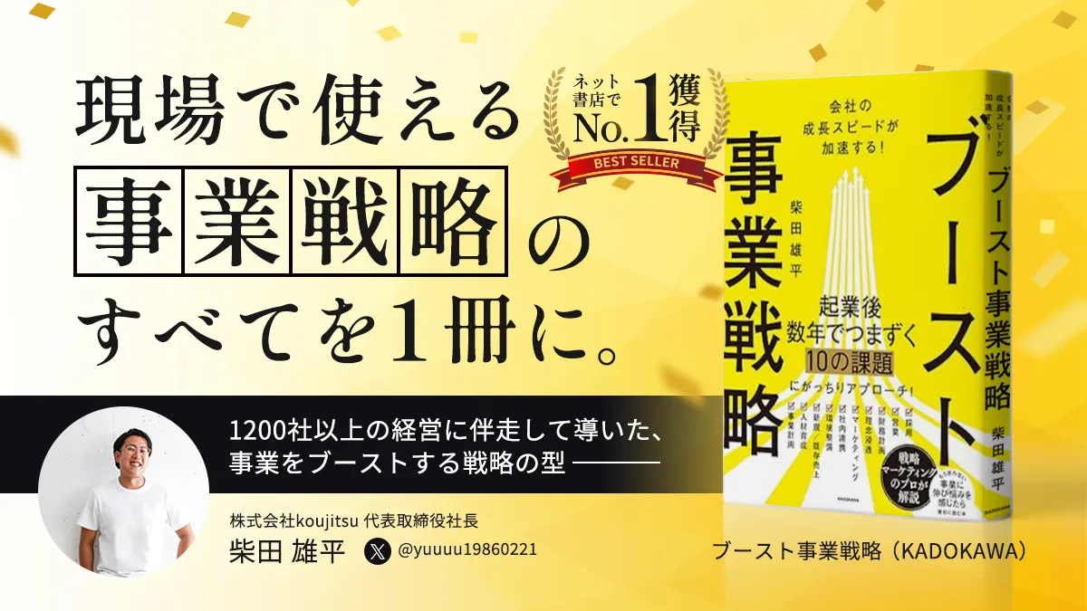 このたび、株式会社一絲の代表取締役社長である柴田雄平氏が、自身初の著書『会社の成長スピードが加速する! ブースト事業戦略』をKADOKAWAから刊行することが決まりました。本書は、事業戦略スクール「知足」を主宰し、これまでに1,200社以上の経営者を支援してきた著者のノウハウが詰まっています。