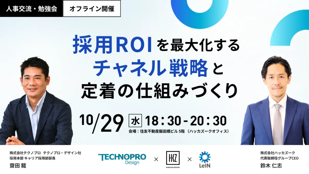 株式会社ハッカズークが主催する人事交流・勉強会『採用ROIを最大化するチャネル戦略と定着の仕組みづくり』が、2025年10月29日(水)に東京で開催されます。このイベントでは、採用戦略を見直し、ROIの最大化を図るための具体的な施策について深く掘り下げます。
