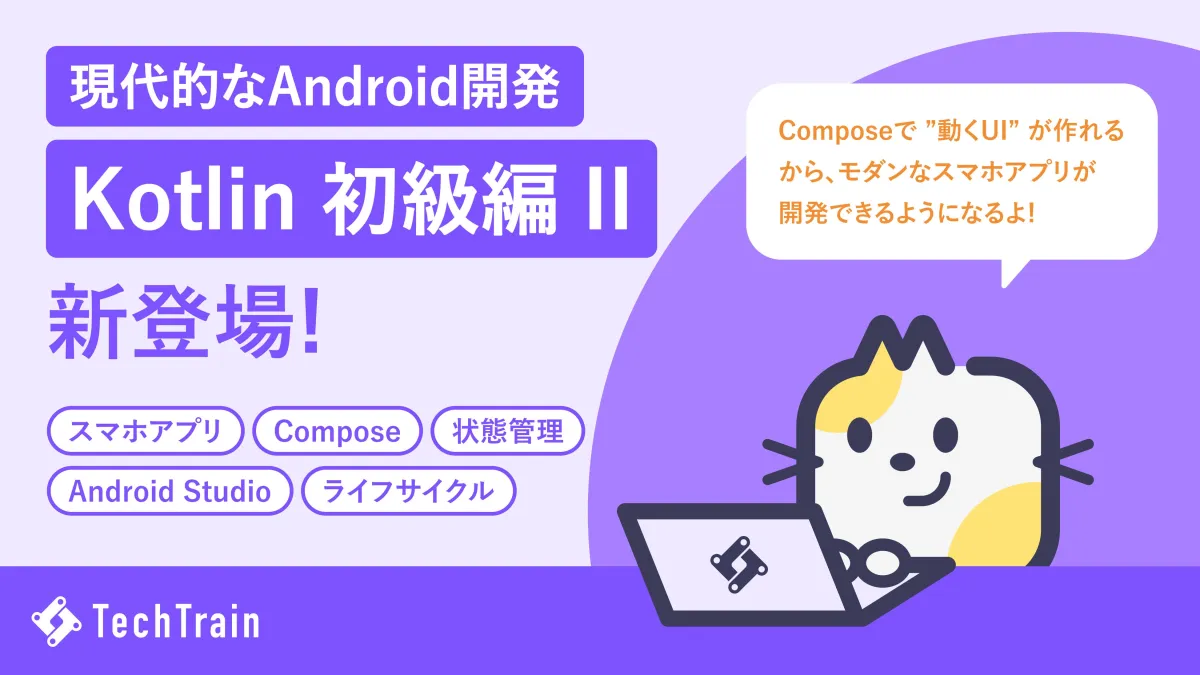 最近、モバイルアプリの開発現場ではJetpack Composeの実装が進んでいます。これにより、アプリのUI設計に新たな潮流が生まれています。しかし、Kotlinに関する教材は依然として不足しており、特に初学者にとっては「Composeの扱い方」や「状態管理とライフサイクルの設計」といった基本を学ぶための資源が求められていました。TechTrainはこのニーズに応えるかたちで、新たなカリキュラムを作成しました。