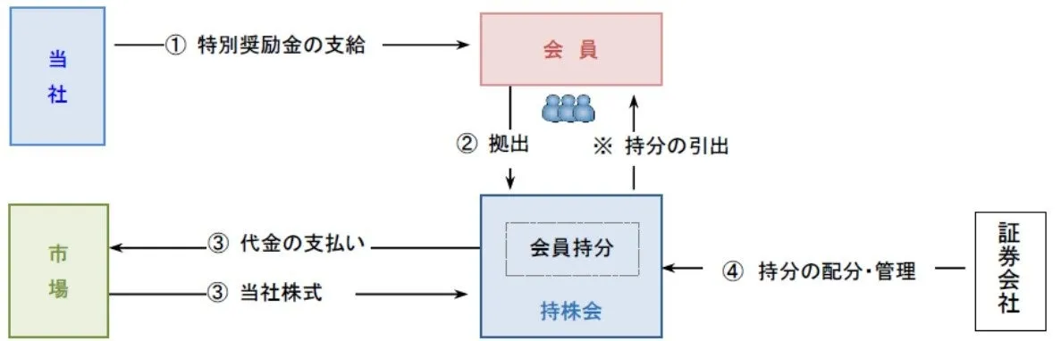 3. 持株会は拠出された奨励金を用いて市場から当社株式を取得。