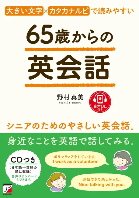 定年後の新たな挑戦として英会話を始めたいと考えているシニアの皆さんに、ぜひおすすめしたいのが『65歳からの英会話』です。この本は、シニアがゆっくりと学べる優しい日常英会話を提供しており、文字も大きめになっているため、視覚的にストレスを感じることなく学習を進めることができます。