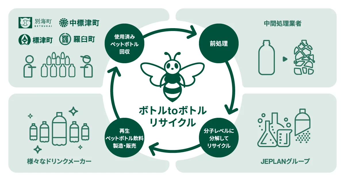 株式会社JEPLANは、北海道に位置する別海町、中標津町、標津町、羅臼町の4つの自治体と「地域循環共生圏推進に関する包括連携協定」を2023年2月28日に締結しました。これは、環境に優しい社会の実現を目指す重要なステップです。この協定により、これらの町で回収された使用済みペットボトルは、JEPLANのグループ会社であるペットリファインテクノロジーを通じて、ボトルからボトルへとリサイクルされます。