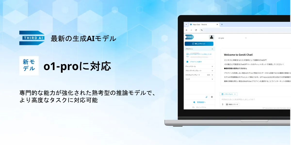 JTP株式会社(東京・品川)は、2025年3月26日、生成AIソリューション「Third AI」が最新のAIモデルo1-proに対応したことを発表しました。これにより、企業や組織が生成AIをビジネスで活用するための新たな選択肢が加わりました。