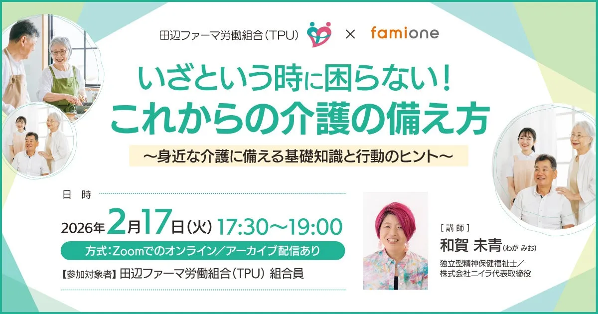 2026年2月17日、田辺ファーマ株式会社の労働組合向けに、介護の備え方についてのオンラインセミナーが行われました。このセミナーは、将来介護が必要になった際に、どのように備え、どこに相談すべきかといった初期の迷いを解消することを目的としていました。近年、少子高齢化が進む中で、介護の問題は多くの家庭にとって重要なテーマとなっています。