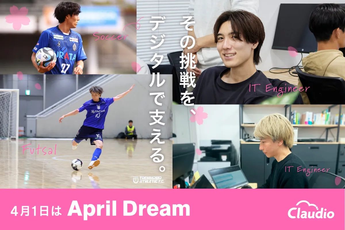 クラウディオは、スポーツで身につけた力を決して競技だけに止まらせず、ビジネスの世界でも活かせる道を開こうとしています。それが私たちのApril Dreamなのです。私たちは、「デュアルキャリアといえばクラウディオ」と言われる日を果たすために、4月1日にこの夢を宣言します。