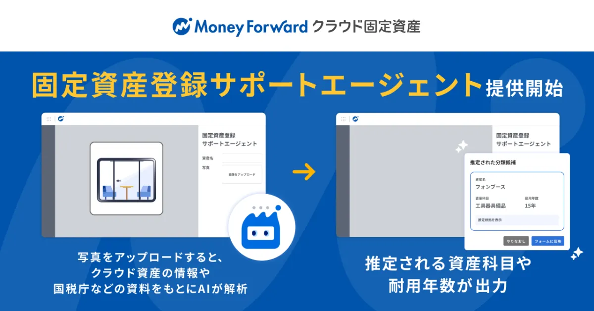 株式会社マネーフォワードは、クラウド型の固定資産管理システム『マネーフォワード クラウド固定資産』に、新たなAIエージェント「固定資産登録サポートエージェント」を一部ユーザー向けに提供開始しました。このエージェントは、ユーザーがアップロードした固定資産の写真や資産名を元に、AIが資産科目や種類、耐用年数を推定・提案することで、固定資産登録時の手間を大幅に削減します。