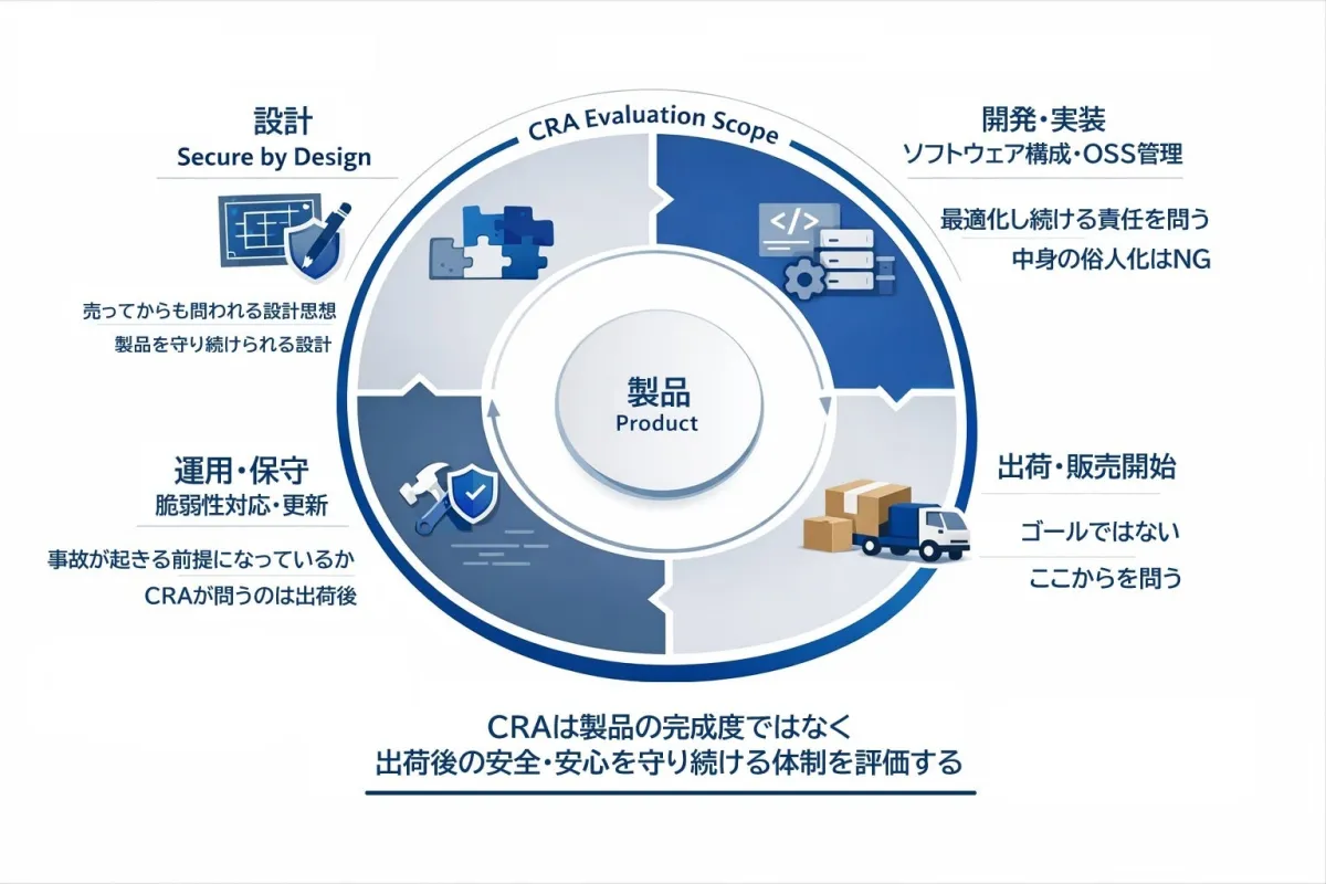 CRAは、スマートフォンやIoT機器、産業機器、クラウドサービスまで、あらゆるデジタル製品を対象にしています。これまで通りの高い性能や機能ではクリアできず、むしろ設計段階からの安全性への配慮や、使用中のソフトウェアの管理・更新能力が重要視されます。エンジニアリングの質が、企業の市場参入に直結することになるのです。
