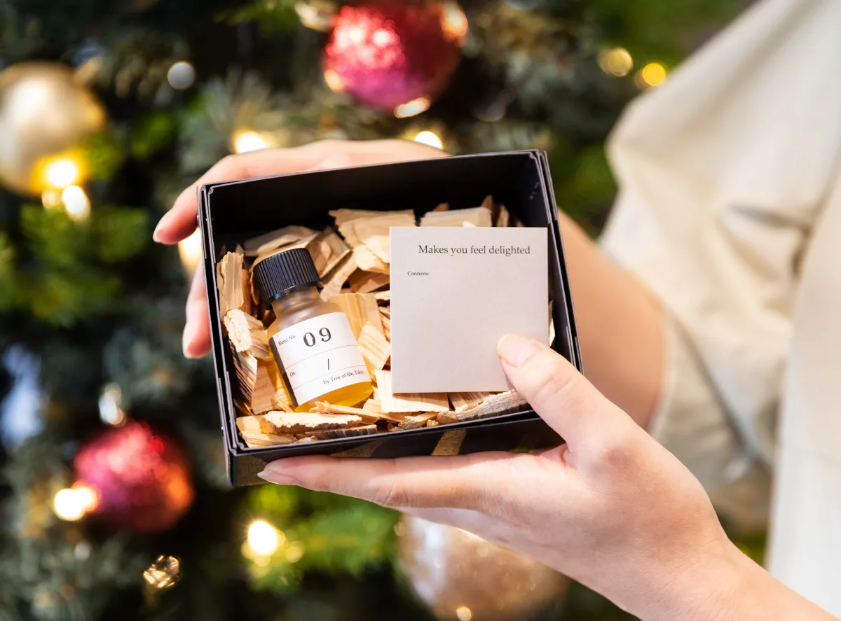 参加者はKAORIUMで選び出した香りを元に、限定レシピのアロマブレンドを体験することができます。作成したブレンドオイルや香りを楽しむためのアイテムを詰めたボックスも提供され、特別な体験ができます。