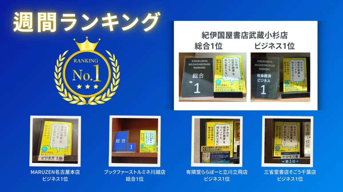 本書は、3月10日から3月16日までの間に紀伊國屋書店武蔵小杉店で総合ランキングとビジネス書籍ランキングの両部門で1位を獲得しただけでなく、MARUZEN名古屋本店やブックファーストルミネ川越店など、他の4店舗でも同様にビジネス書ランキングでの1位を記録しました。この実績は、多くの経営者やビジネスパーソンが本書の内容に共感し、有効性を実感している証でしょう。