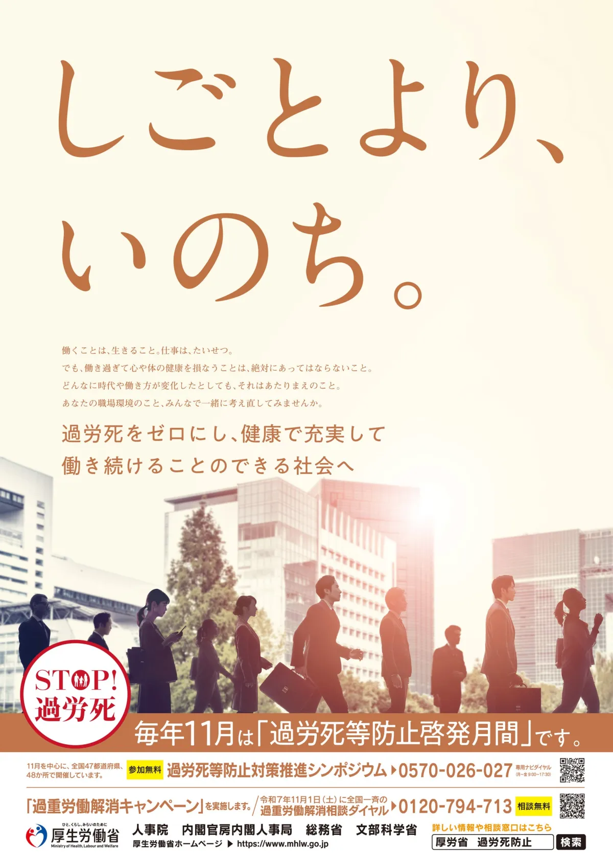 毎年11月は「過労死等防止啓発月間」として、全国でさまざまな取り組みが行われます。この機会を通して、労働者や事業者が心身の健康に意識を向けることが求められています。