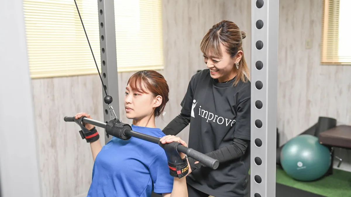 improveは横浜市内を中心に、大和市や緑区の近隣地域からも多くの方に愛されてきました。活動を通じて、多くの人々の健康づくりやボディメイクを積極的にサポートしています。トレーニング指導風景やアロマサロン、整体サービスを提供し、訪れるすべての人々にとって快適でリラックスできる環境を整えています。