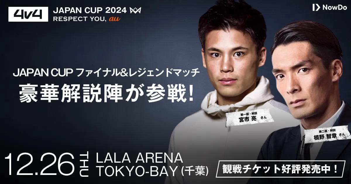 本大会のクライマックスとなる最終日、12月26日には、準決勝および3位決定戦が行われる第1部と、決勝、スペシャルマッチ、レジェンドマッチが行われる第2部が予定されています。ABEMAでは、これらの模様を無料で生中継することが発表されました。特に、解説には昨年の「4v4 JAPAN CUP」にも参加した横浜F・マリノスの宮市亮選手が第1部に、元日本代表の槙野智章さんが第2部に出演します。実況担当はそれぞれ、「ABEMA」の辻歩アナウンサーとテレビ朝日の寺川俊平アナウンサーが務めます。
