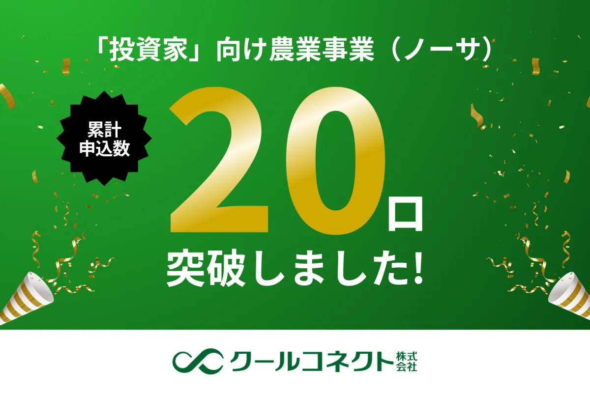 群馬県伊勢崎市に本社を置くクールコネクト株式会社は、投資家向けの新しい農業ビジネスモデル「ノーサ」の申込み数が20口を超えることを発表しました。この画期的な事業は、プロの農業者が高品質な野菜を生産し、その収益を投資家に分配するという仕組みを採用しています。