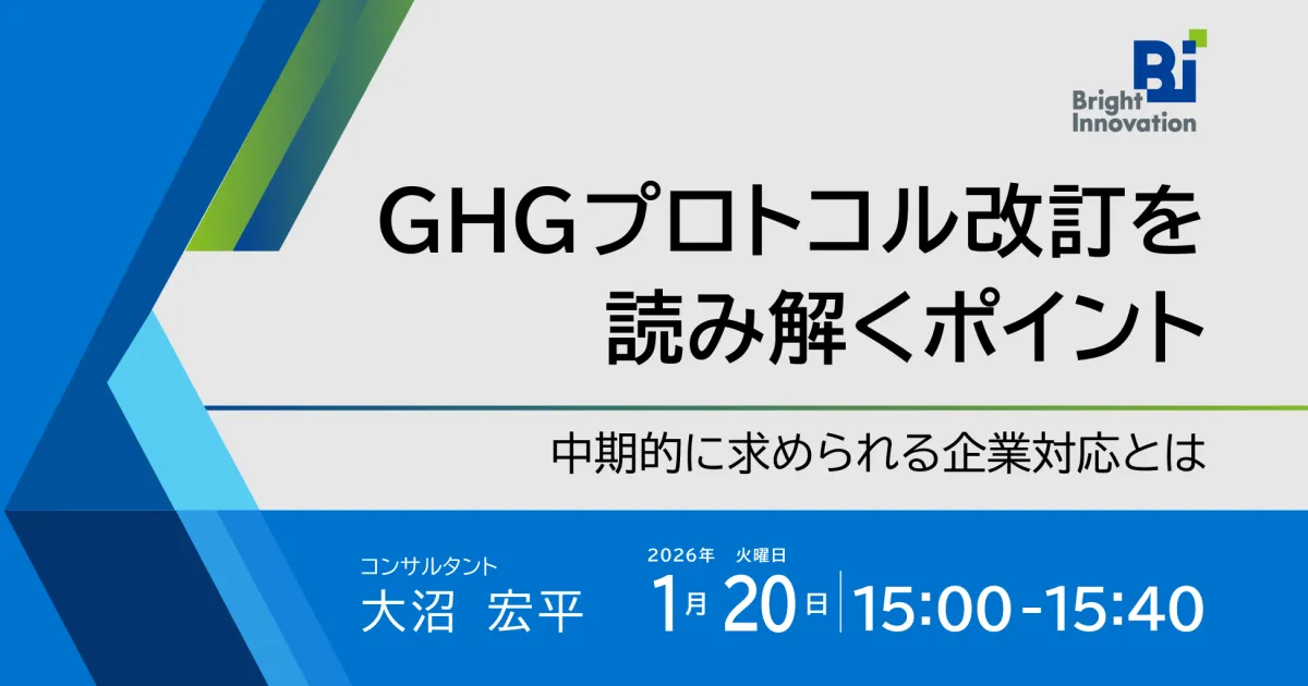 株式会社ブライトイノベーションは、サステナビリティやESG・IRに関わる専門家向けの無料ウェビナーを実施します。このウェビナーでは、現在進行中のGHGプロトコルの改訂内容について詳しく解説します。