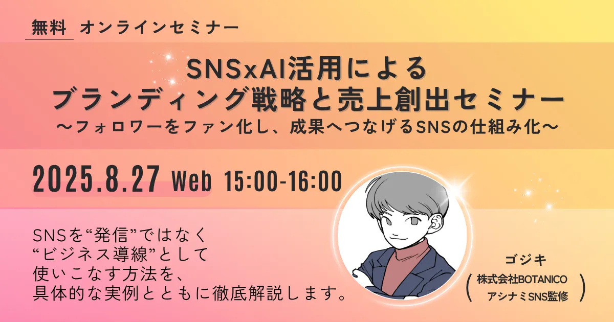 このセミナーに参加することで、SNSを単なる発信の場から、戦略的なビジネスツールへと変えるための具体的なノウハウを身に付けることができます。ぜひご参加ください。