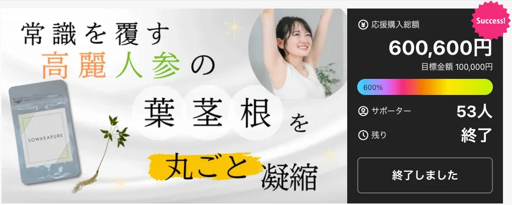 Makuakeでの先行販売は、2026年1月31日から2月27日までの間に実施され、多くのサポーターが集まりました。開始からまもなく、予想を上回る支持が集まり、最終的には目標金額の600%達成という驚きの結果となっています。コメントには、「国産の高麗人参を探していた」や「植物工場での栽培で安心感が増した」との声が寄せられました。これは、健康を意識する層が賢い選択をしている証拠となります。