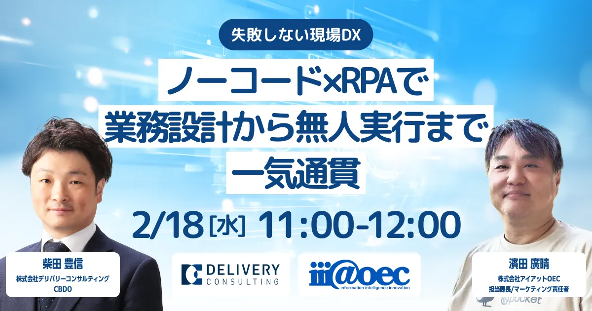 データリテラシーを高め、企業の競争力を強化しようとする動きが拡大しています。特に、現場のスピードやデータの活用力が企業の成功に直結することが今や常識となってきています。そんな中、株式会社デリバリーコンサルティングと株式会社アイアットOECが共催するWEBセミナー「失敗しない現場DX ノーコード×RPAで業務設計から無人実行まで一気通貫」が注目を集めています。このセミナーでは、ノーコードとRPAを駆使して業務の効率化を図る具体的アプローチが紹介されます。