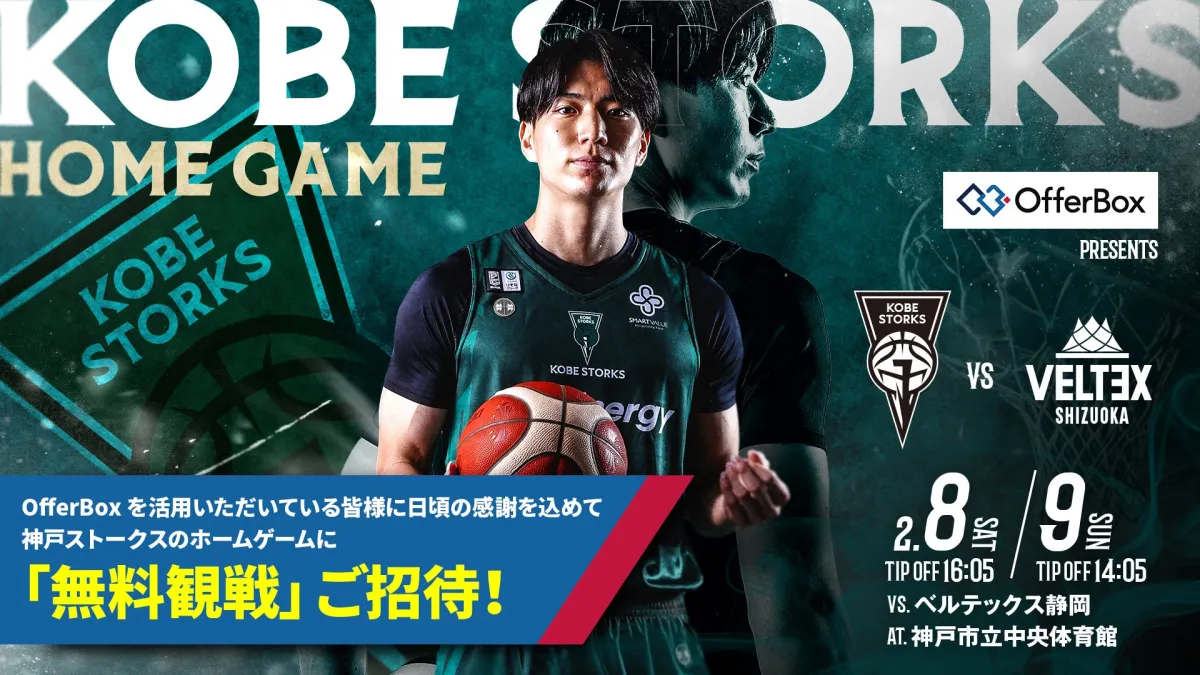 プロバスケットボールクラブ「神戸ストークス」が、2025年2月8日(土)および9日(日)に冠試合「OfferBox presents 神戸ストークス vs ベルテックス静岡」を開催します。この試合は、学生と企業を繋ぐサービス「OfferBox」を運営する株式会社i-plugが共同オーナーを務める神戸ストークスを題材にした特別なイベントです。