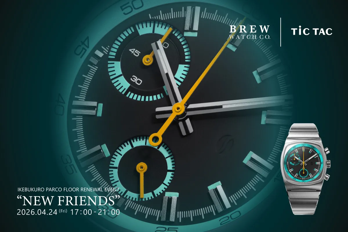 池袋PARCO 4Fに位置するチックタック池袋店では、17時から21時の間、新しいフロアリニューアルを祝うイベントが行われます。来店者には、BREW WATCH CO.の最新モデルだけでなく、ブランドにちなんだ香り高いコーヒーも無料で提供される予定です。数量限定の特別な時を楽しむことができるこの機会、時計の新たな魅力に触れるチャンスです。