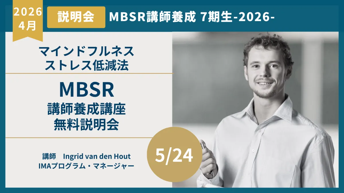 2026年の秋に開講予定の「マインドフルネスストレス低減法(MBSR)」講師養成プログラム第7期に向けて、International Mindfulness Center JAPAN(IMCJ)では無料オリエンテーションを5月24日にオンラインで開催します。このオリエンテーションは、MBSR講師になりたいと考えている方々に、自らの可能性を広げる良い機会となるでしょう。