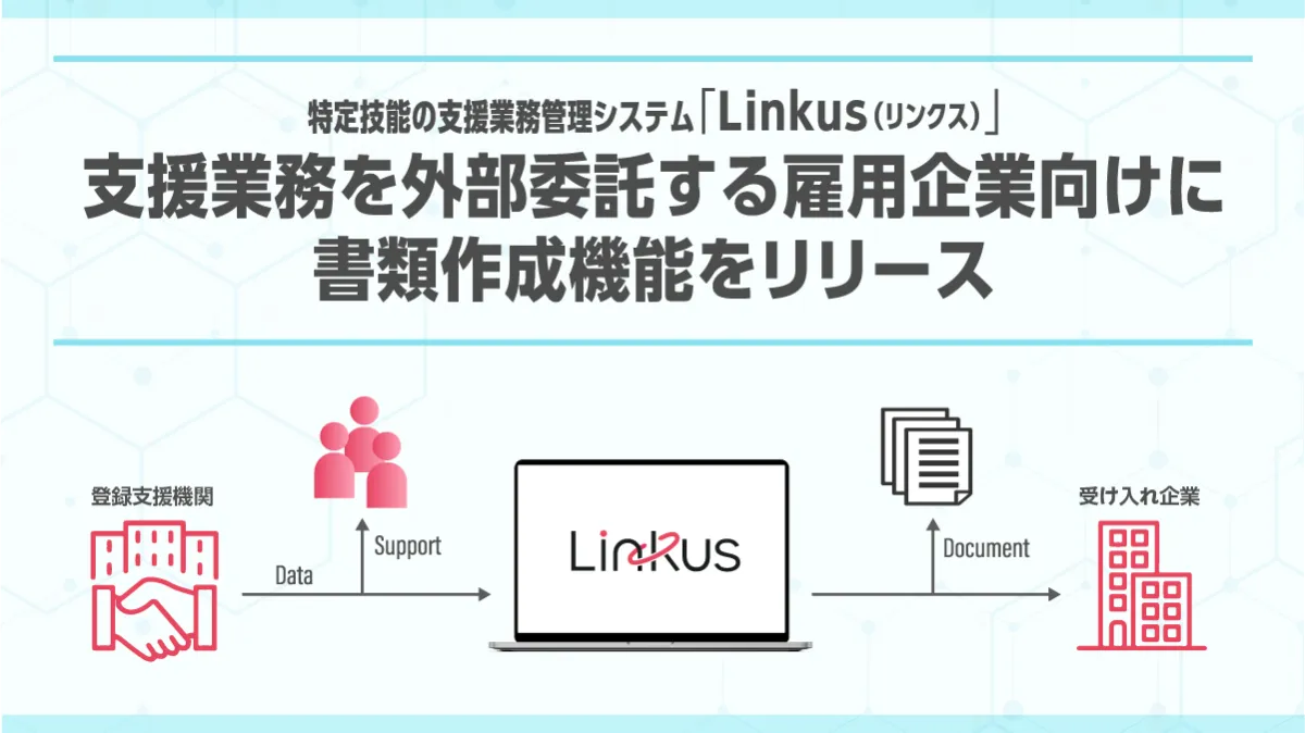 BEENOS HR Link株式会社が運営する特定技能支援業務管理システム「Linkus(リンクス)」は、企業の効率化支援の理念のもと、新たに書類作成機能を追加しました。この機能は、外部に支援業務を依頼している企業が自社で書類作成を行えるようにサポートします。