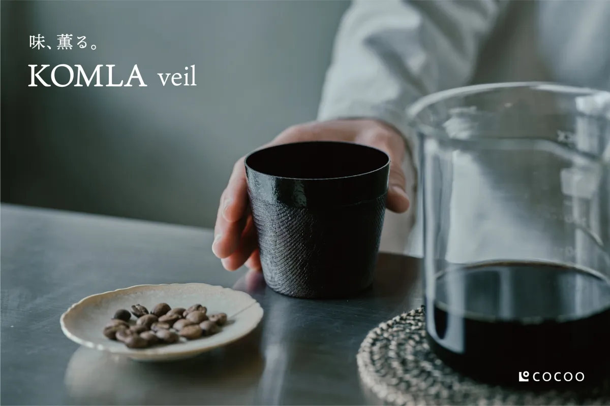 2026年4月、京都に本社を置く合同会社COCOOから、画期的な紙漆カップの新シリーズ『KOMLA veil(コムラ ヴェール)』が誕生します。このシリーズは、1mmの極薄な飲み口と滑らかな口当たりで、飲み物の味や香りを直接伝える新しい体験を実現します。