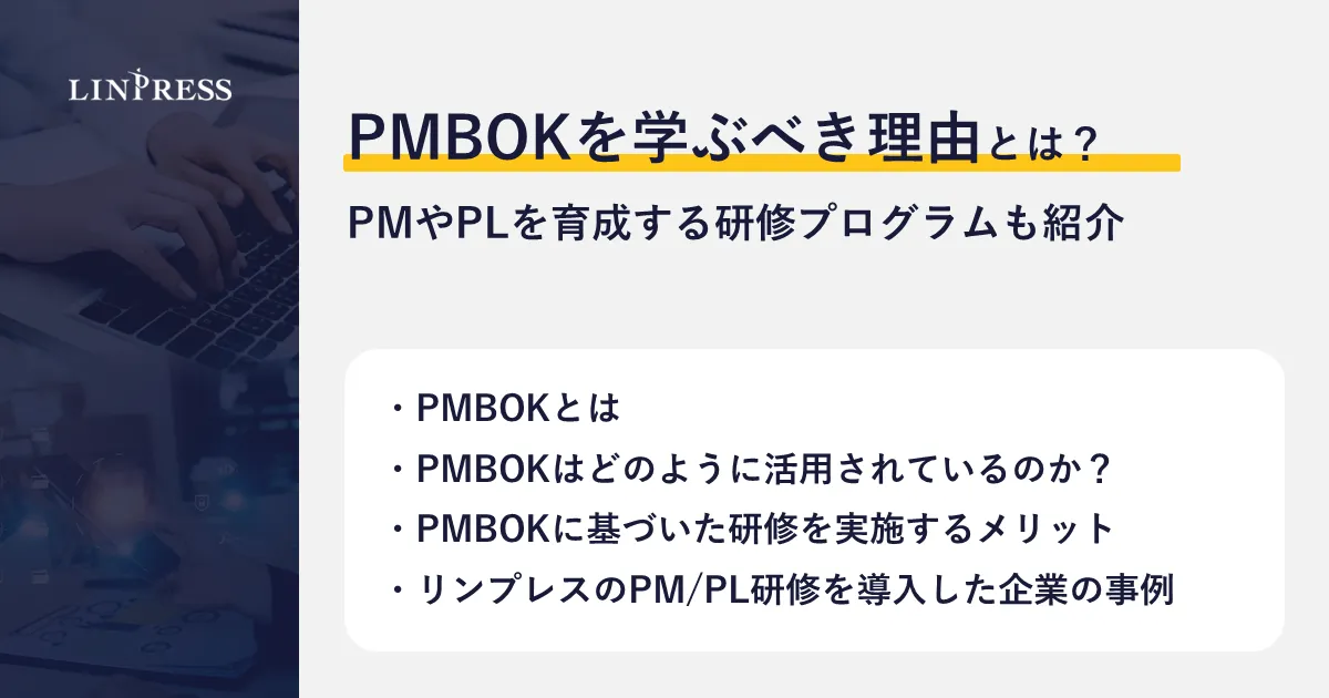 リンプレスでは、PMBOKを使った研修プログラムを提供しており、多くの企業で成功事例が報告されています。例えば、ある企業では、従業員のスキル向上によりプロジェクトの成功率が飛躍的に向上しました。