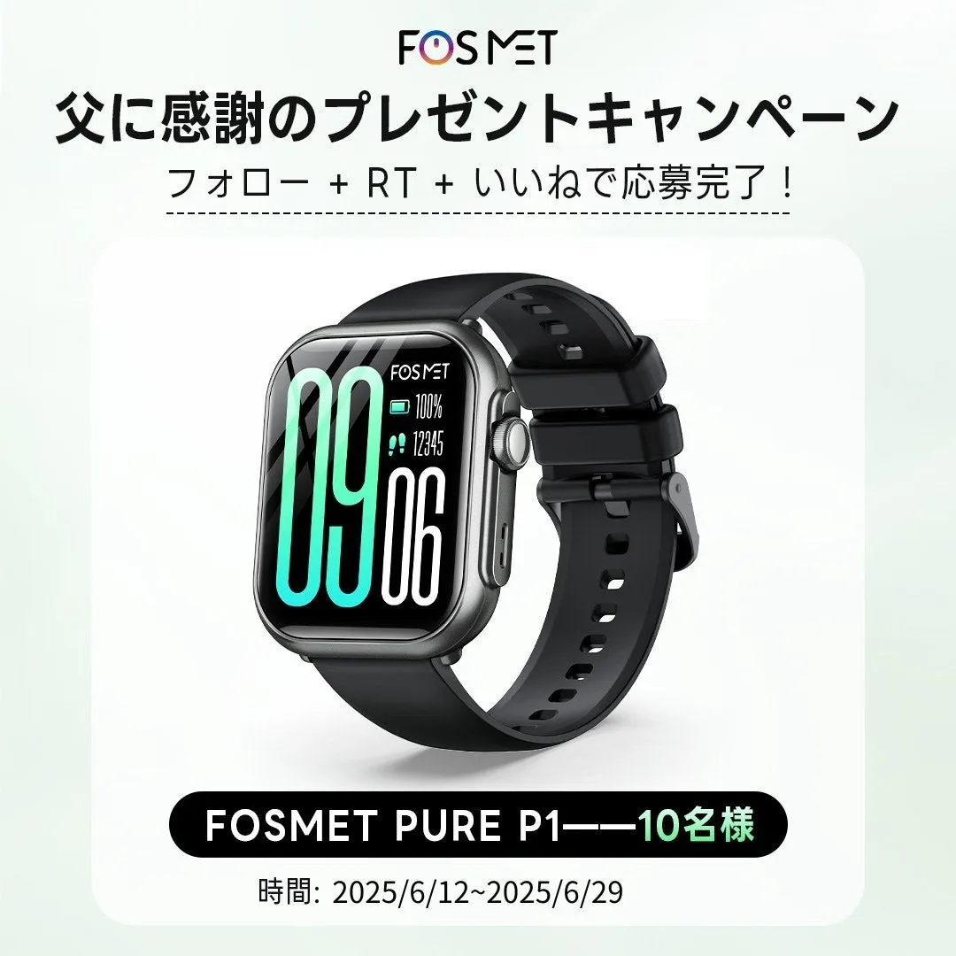 FOSMETでは、父の日を祝う特別なキャンペーンを実施中です。残り3日間で、最新のスマートウォッチ「Pure P1」を抽選で10名様にプレゼントするチャンス!お父さんの健康を見守るこのスマートウォッチは、日常のサポートにぴったりのアイテムです。